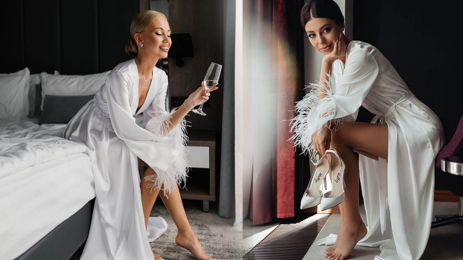 Milla Nova, ipek gecelikler, uzun kuyruklu sabahlıklar ve tüylü terliklerle lüks bir hazırlık atmosferi sunarken, Galia Lahav ve Fleur du Mal iş birliği, seksi slip elbiseler ve püsküllü takım elbiselerle gelin adaylarının stilini tamamlıyor. Dana Harel’in dantelli mini elbiseleri ve ince detaylarla süslenmiş hazırlık kombinleri, sade ama şık bir görünüm arayanlar için ideal seçenekler arasında yer alıyor.