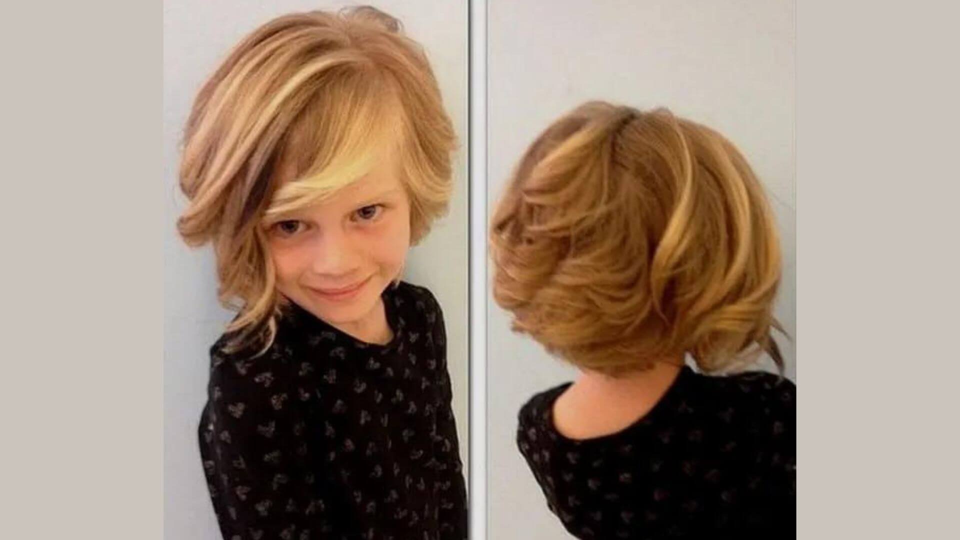 Vintage tarzda bir bob kesim, küçük kızlarda oldukça tatlı ve sevimli görünür. Bu tarz, daha uzun üst katmanlarla ve kısa alt kesimle elde edilir.