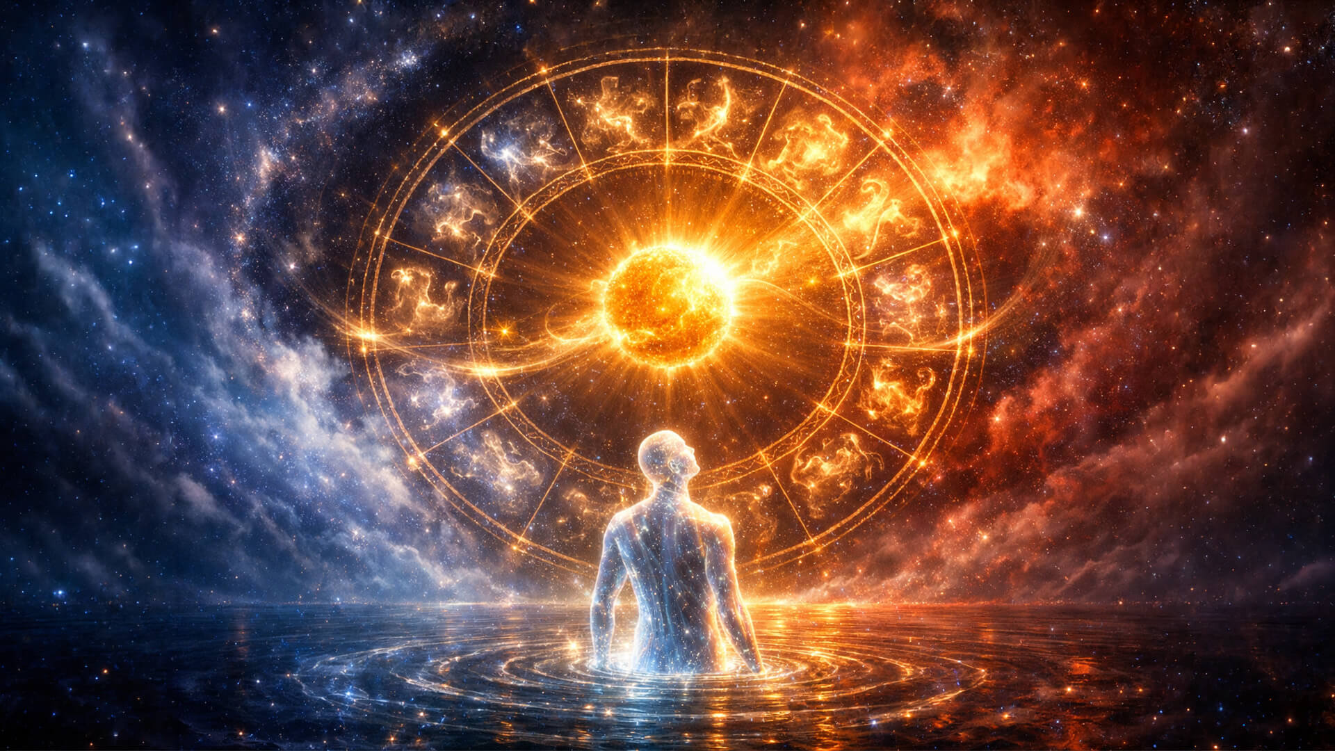 Astrolojide Güneş; farkındalığımızın ışığını, özümüzü, Benliğimizi ve ruhsal yapı içindeki düzenleyici ilkeleri simgeler. O, kişiliğimizin farklı parçaları arasında düzen, bilinç ve uyum kuran merkezdir. Güneş, Zodyak çarkının on iki arketipi boyunca yol alırken farklı arketipleri, nitelikleri ve gelişim aşamalarını aydınlatır. Bu yolculuk, bireysel bilincin kolektif okyanustan doğmasıyla, yani doğum anıyla başlar.