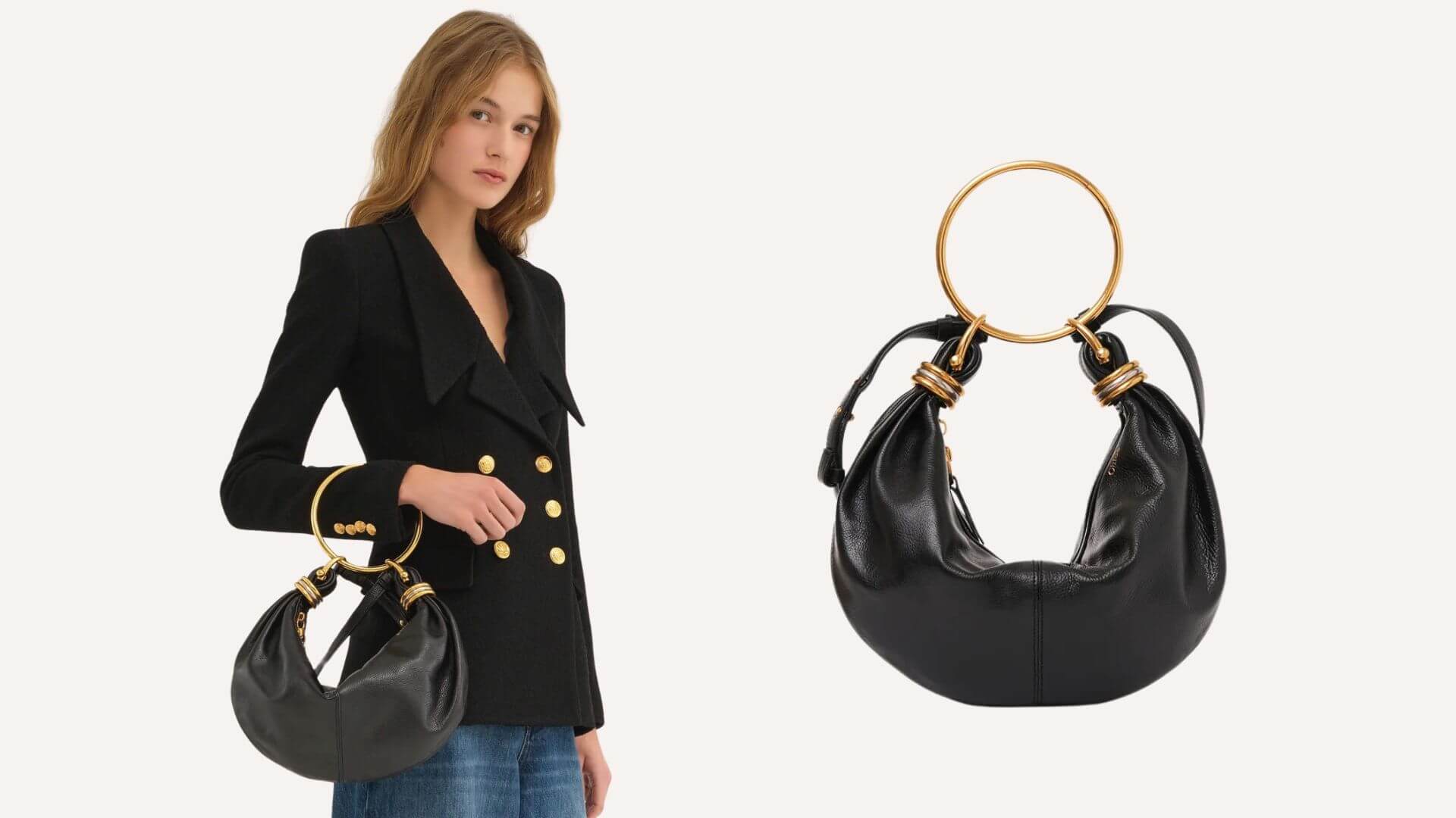 Chloé, heykelsi yuvarlak form, iki tonlu halkalar ve çarpıcı metal bilezik sapıyla hobo çanta trendine yükseltilmiş bir yorum getiriyor.