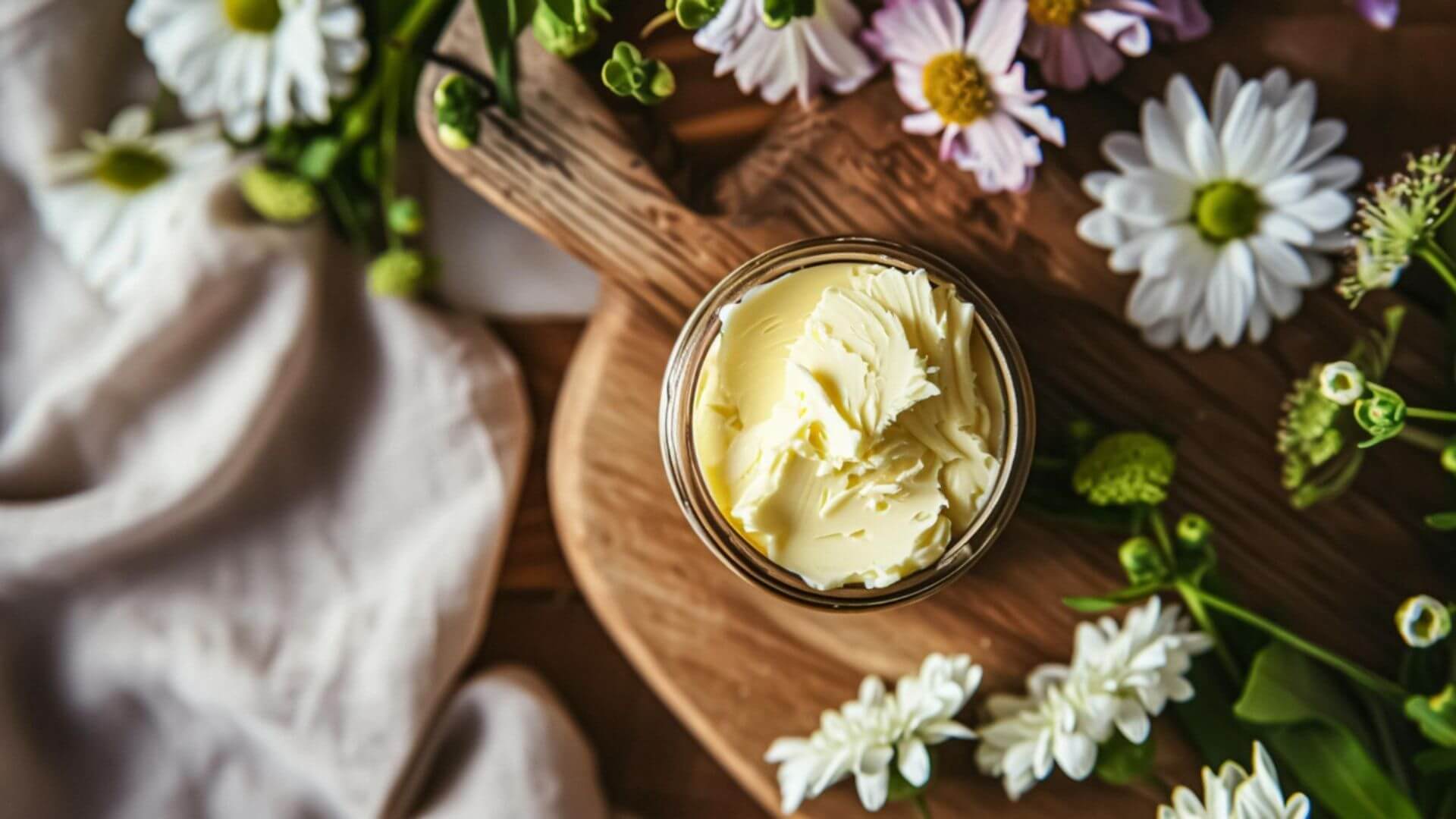 Vücut tereyağı genellikle kakao yağı veya shea yağı gibi doğal kaynaklı yağlardan yapılır ve özellikle çok kuru ciltlerin nemlendirilmesinde kullanılır.