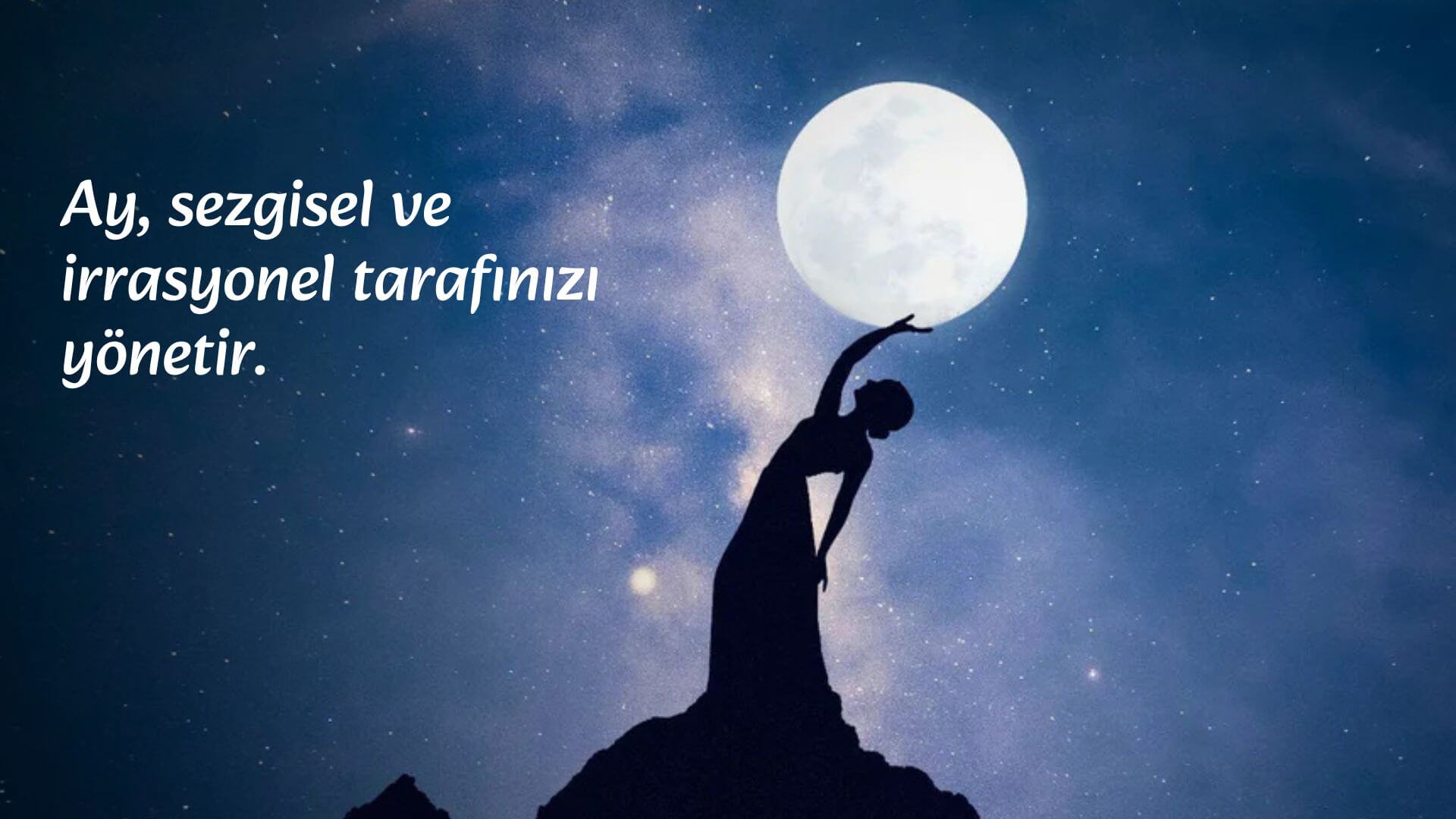Ay değişim, döngüsellik ve ruh halleriyle ilgilidir. Güneş bilinçli benliğinizi temsil ederken, Ay sezgisel ve irrasyonel tarafınızı yönetir.