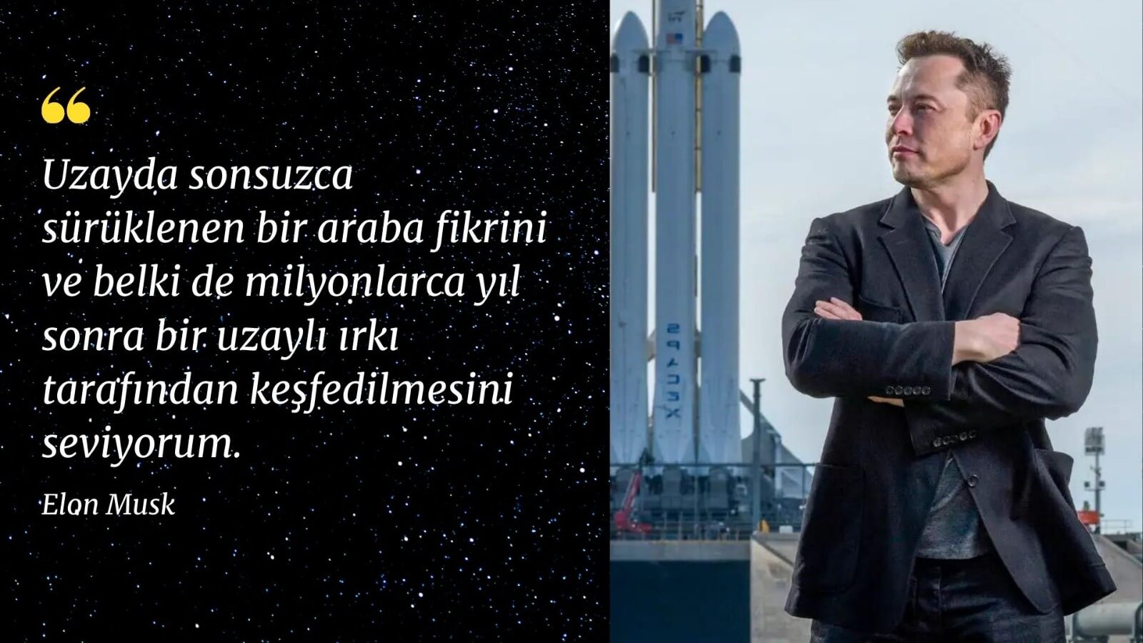 - “Uzayda sonsuzca sürüklenen bir araba fikrini ve belki de milyonlarca yıl sonra bir uzaylı ırkı tarafından keşfedilmesini seviyorum.”