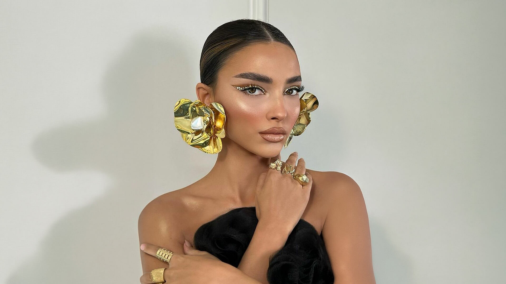 Minimal bir görünümde gerçek gücünü gösteriyor: kusursuz bir siyah elbise ve tek bir taşlı küpe. Fazlasına ihtiyaç yok. Klasik bir kombin, anında en rafine ve en etkileyici haline evriliyor.