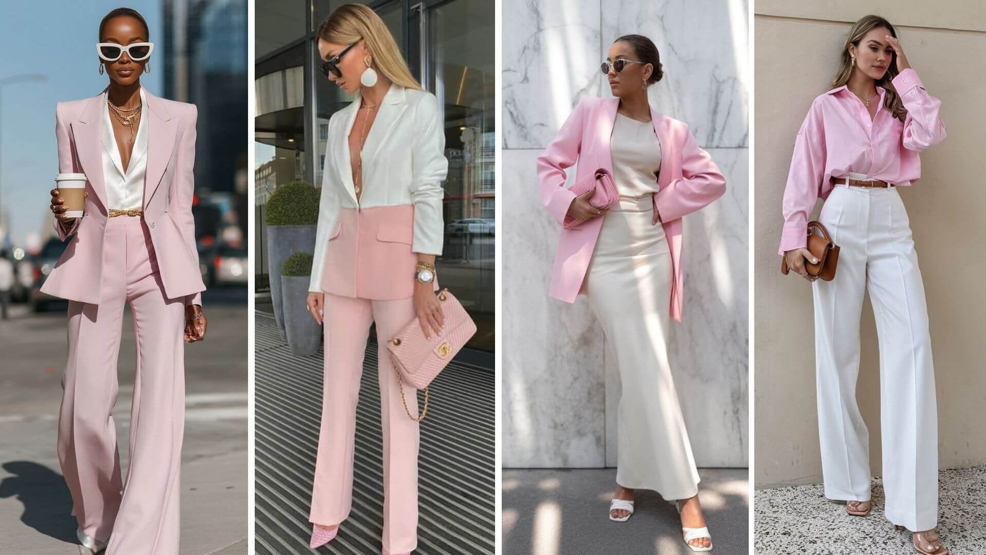 İster akışkan bir elbise ister keskin hatlı bir blazer tercih et, pembe ve  beyaz bu sezon sade ama etkileyici görünmenin en kolay yolu.