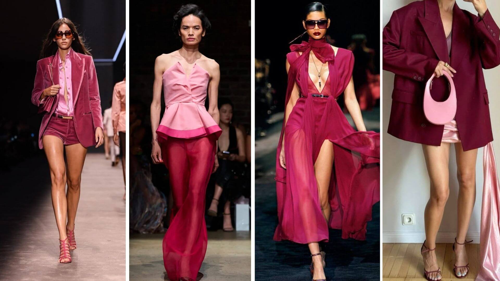 Miu Miu: Pembe + kırmızı kombinasyonu bu sezonun en çok konuşulan podyum anı. Kısa kesimler, retro detaylar, beklenmedik renk çarpışmaları.