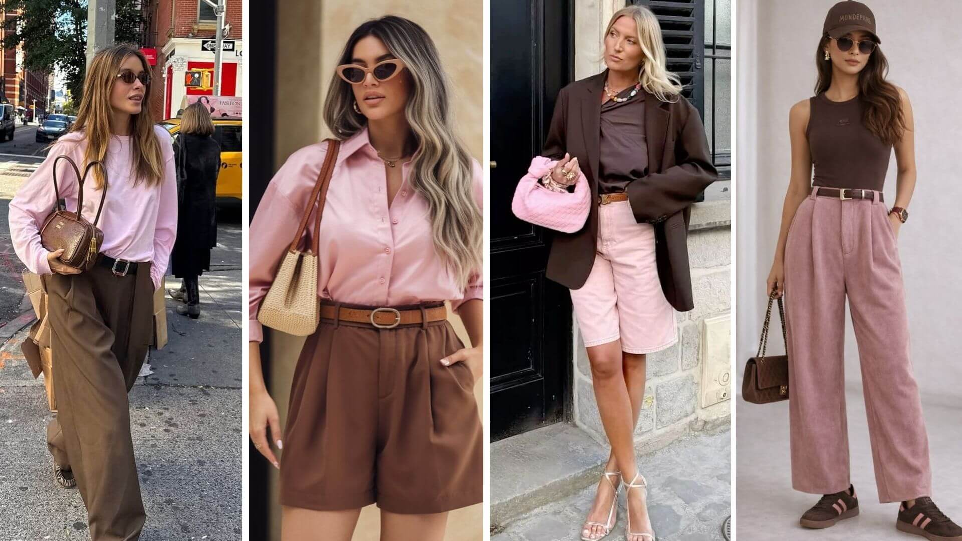 En iyi sonucu veren eşleşme ise net: pudra pembesi ve çikolata kahvesi. Yumuşak bir pembe ton, derin ve zengin bir kahverengiyle birleştiğinde hem sıcak hem dengeli bir kontrast oluşturur. İster pudra pembesi bir üstü çikolata tonlarında deri pantolonla tamamla, ister kahverengi bir ceketle pembeyi katmanla—sonuç her zaman kontrollü, modern ve dikkat çekici olur.