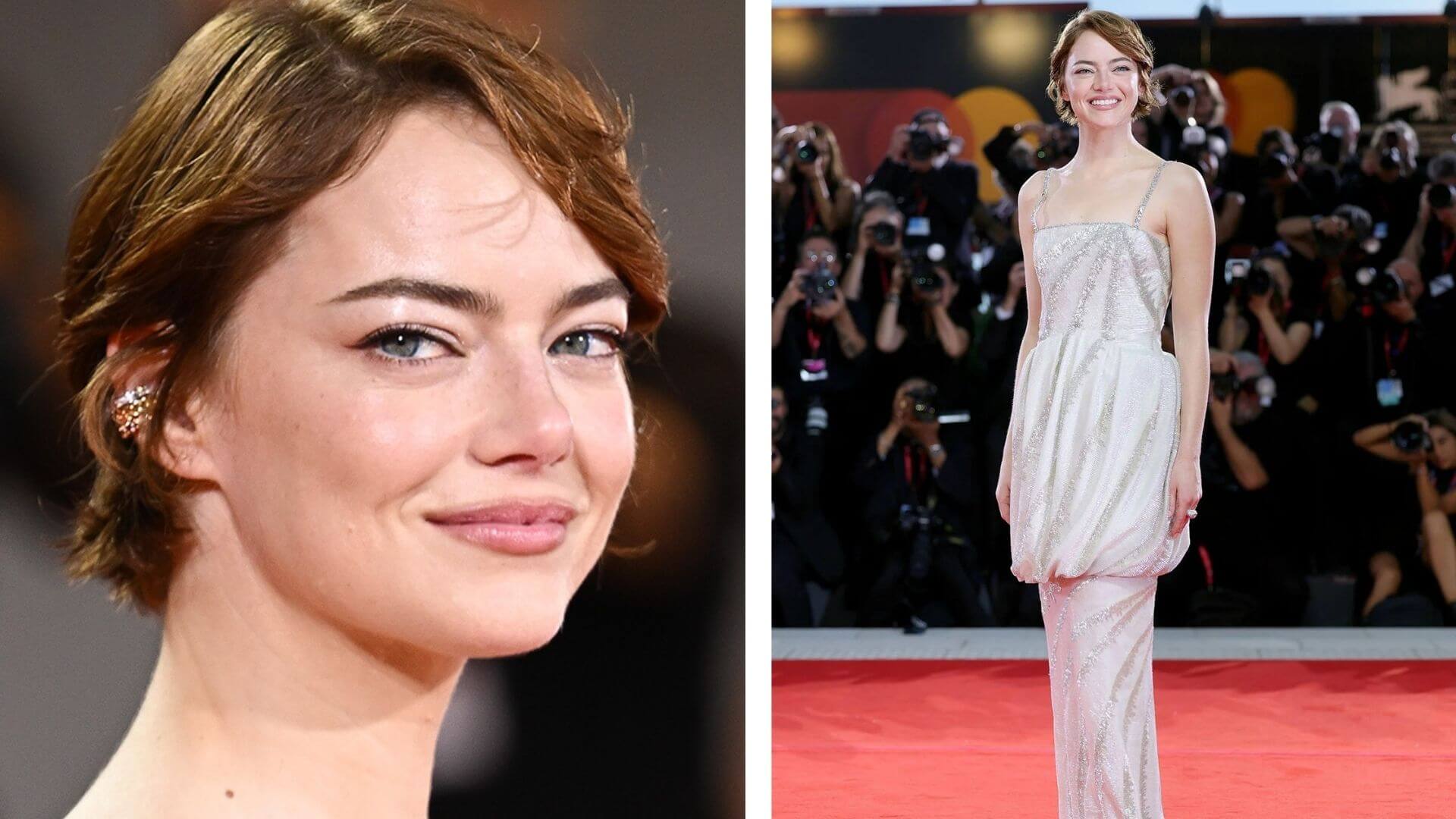 Emma Stone, iki yıl önce Poor Things ile Lido’yu podyuma çevirdikten sonra, bu kez başka bir Yorgos Lanthimos projesi Bugonia ile geri döndü. Görünümü, filmin eksantrik ruhuna uyum sağladı. Louis Vuitton’un yüksek mücevher koleksiyonlarından Rupture küpe seti ve Perception yüzüğü, görünümüne heykelsi bir dokunuş kattı.