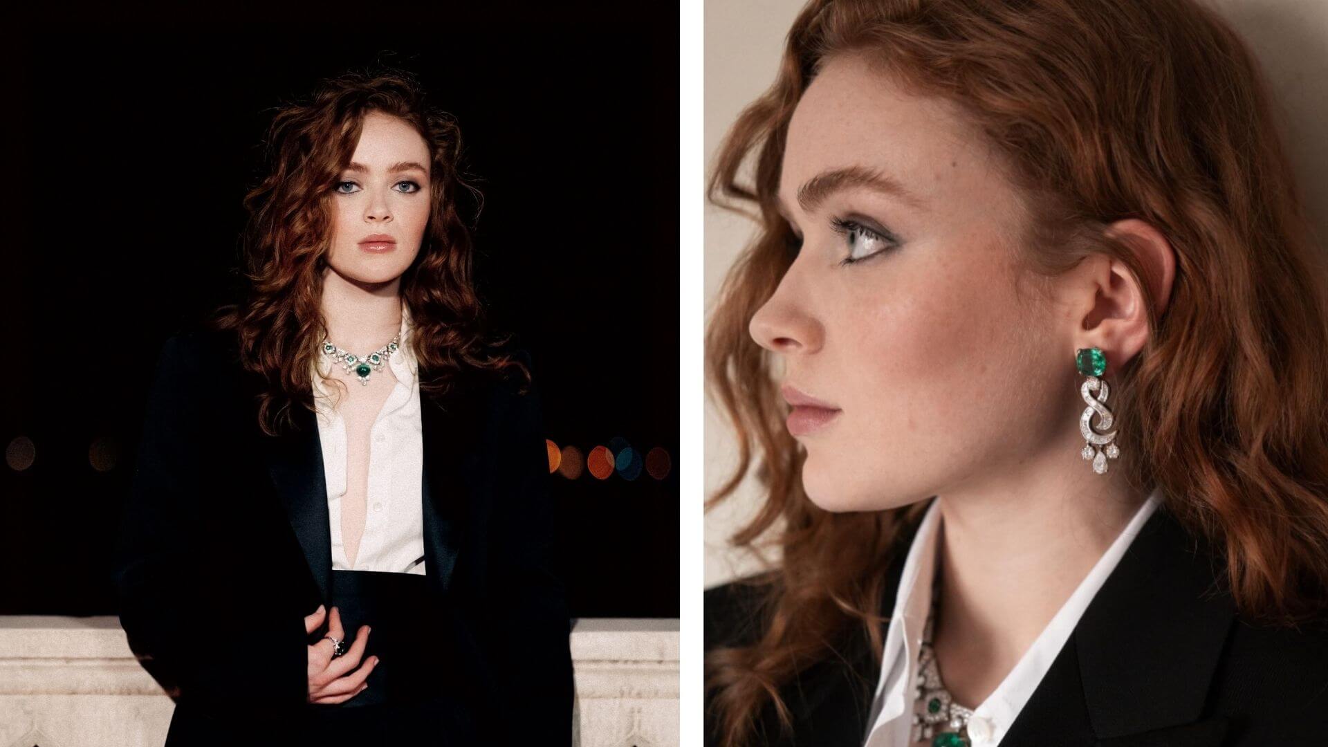 Sadie Sink, Bvlgari – Venedik Film Festivali Gala Yemeği’nde Sadie Sink, Bvlgari High Jewellery ile ışıltılı bir zarafet sergiledi. Platin, pırlanta ve zümrüt kolye, uyumlu küpeler ve kabochon ile yastık kesim zümrütler, parlak ve fantezi kesim pırlantalarla süslenmiş dikkat çekici bir yüzük taktı.