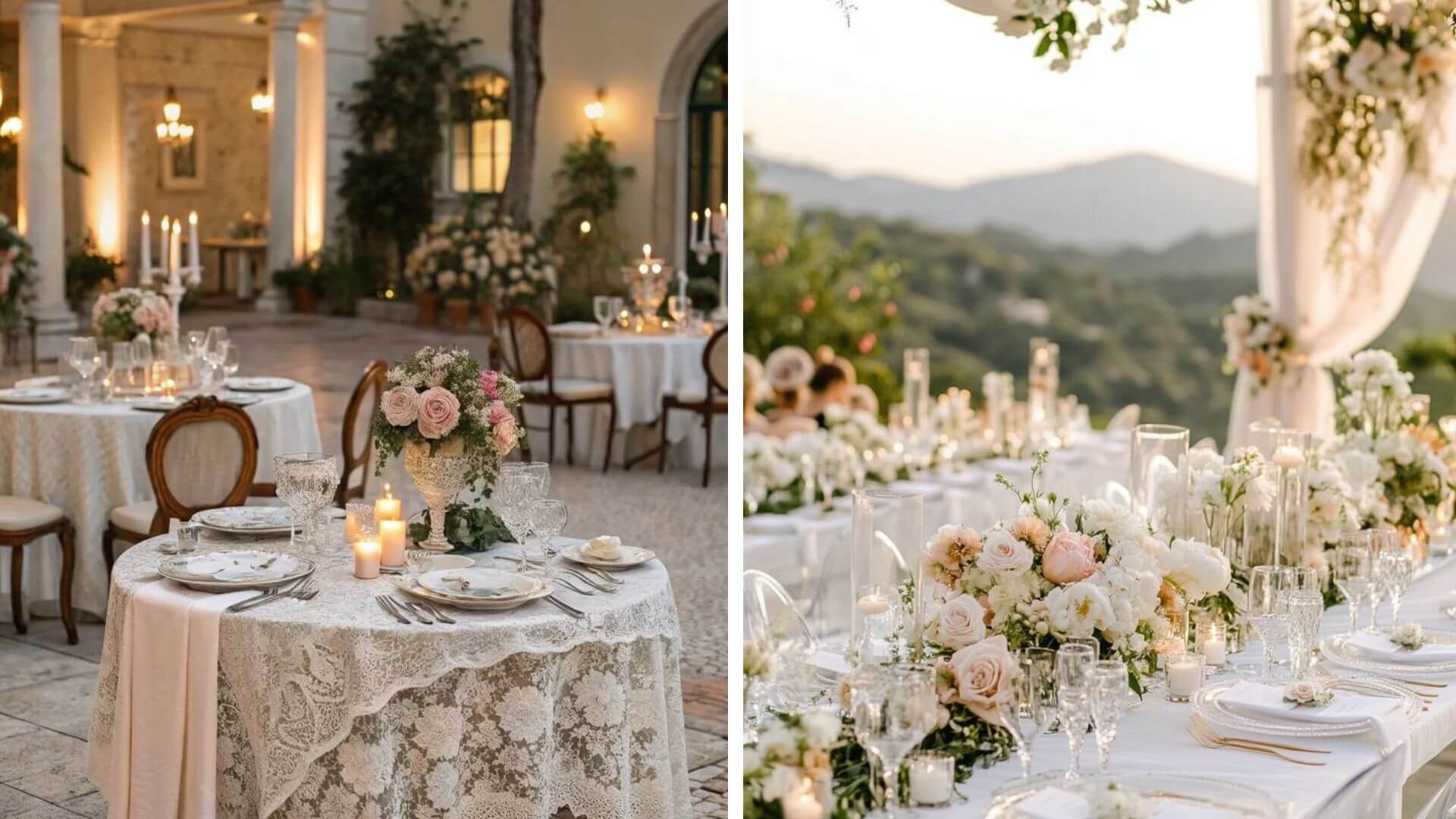 Bu düğün dekorasyon tarzı, zarif ve evrensel bir romantizm isteyenler için idealdir. Düğününüz bugün olduğu kadar 30 yıl sonra da rüya gibi hissettirecektir.