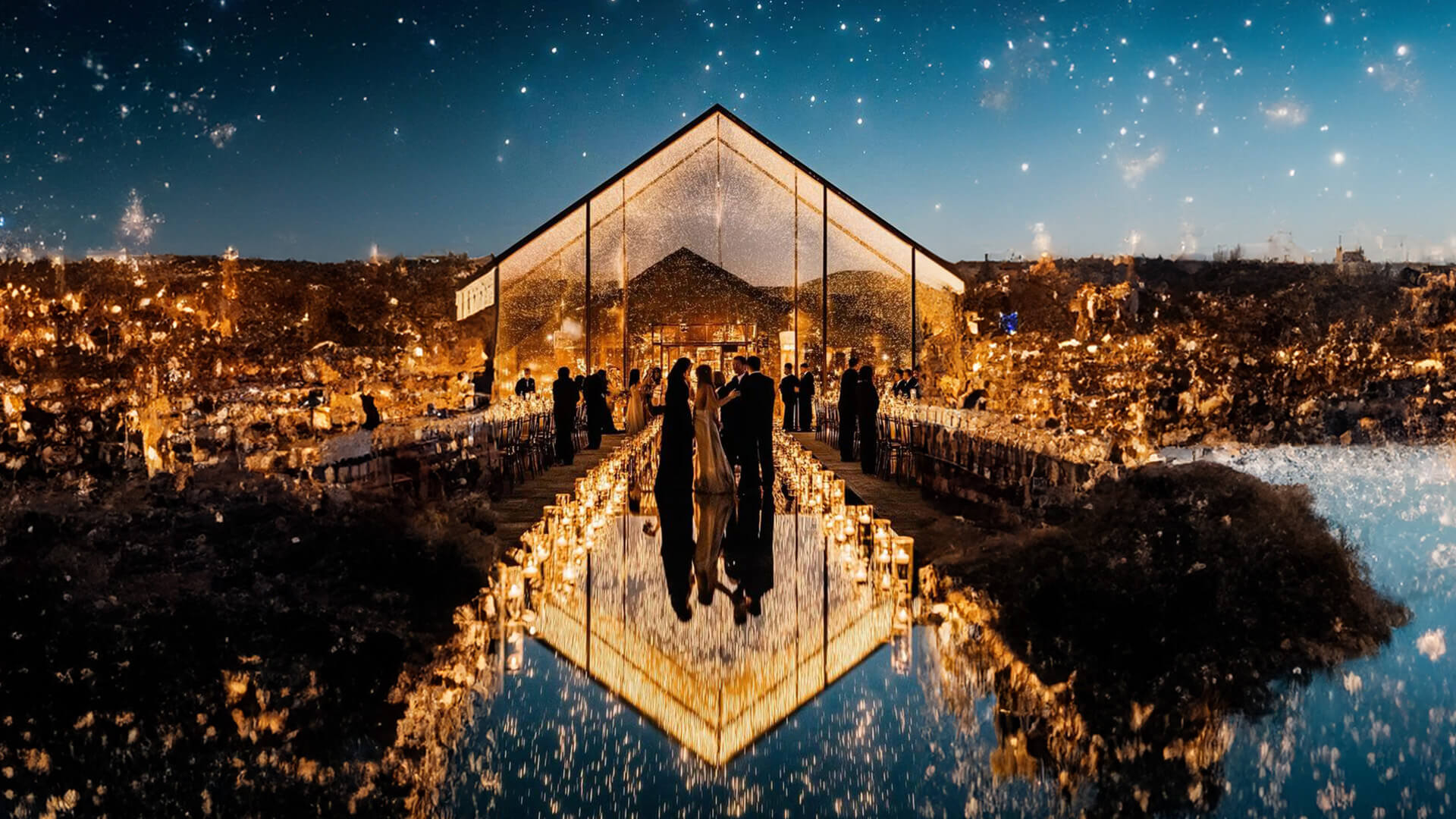 Yıldızlı gökyüzü, ışıltılı peri ışıkları ve galaksiden ilham alan düğün dekorasyon fikirleri, yıldızlarda yazılı bir kutlama hissi yaratır.