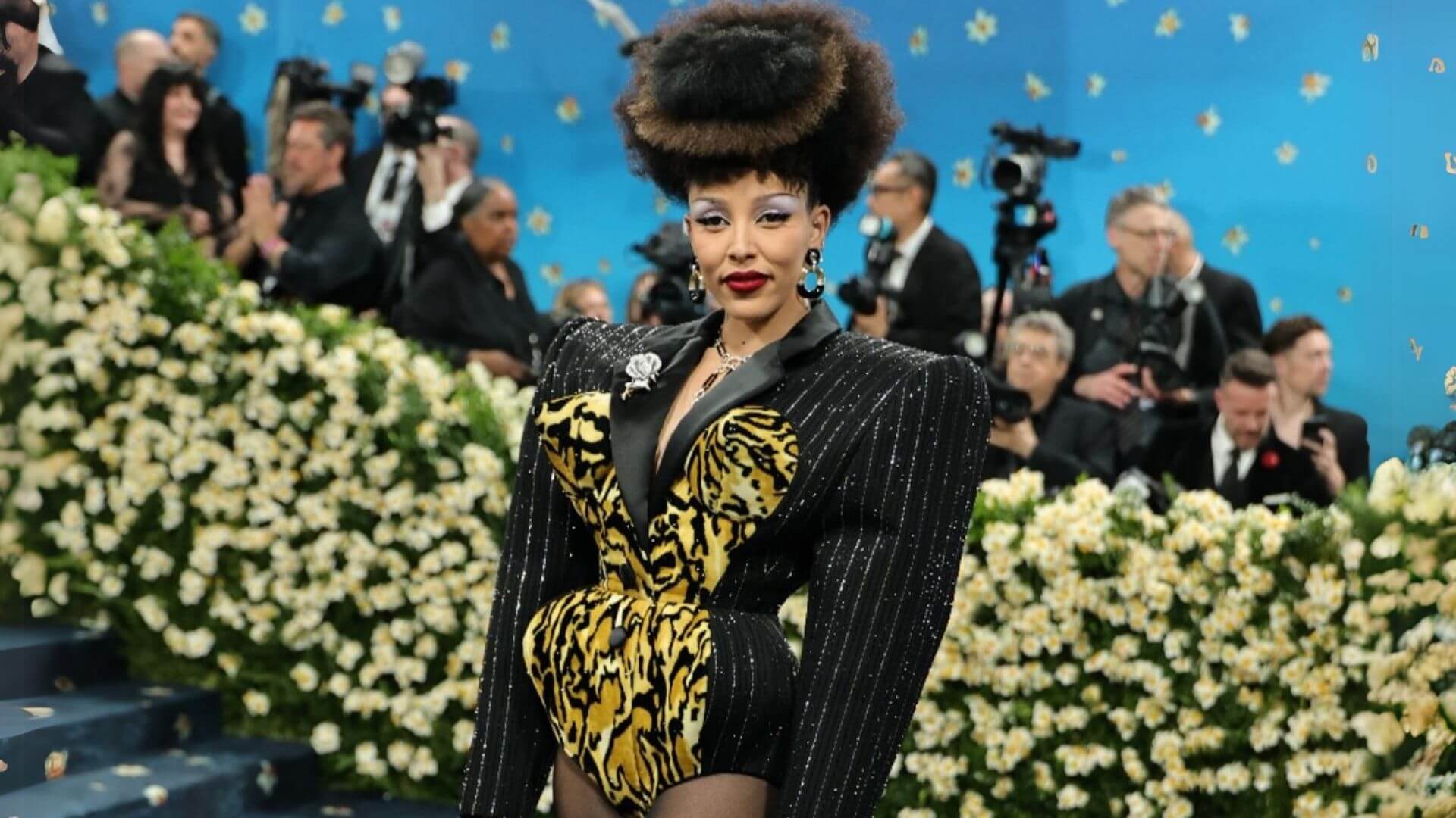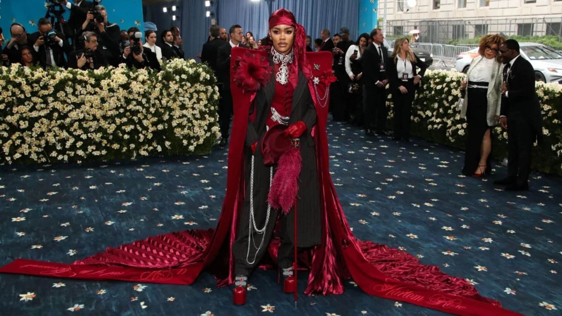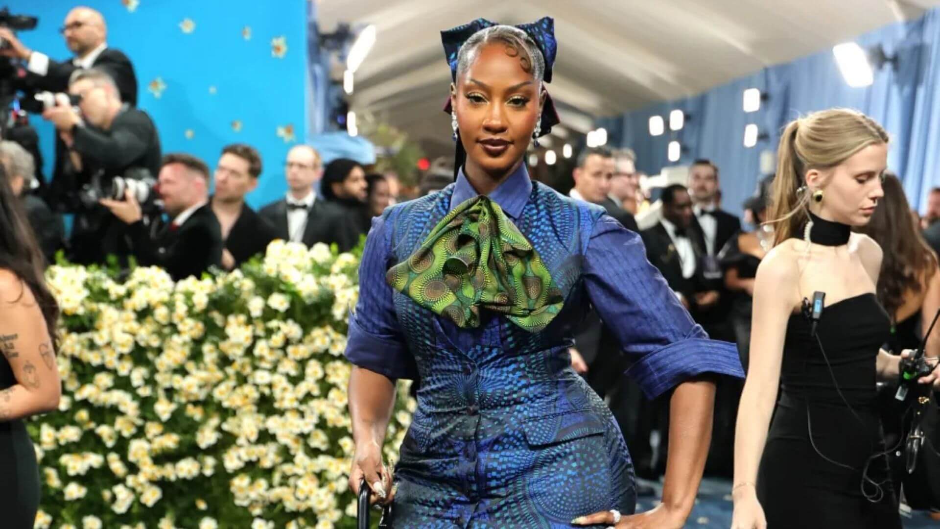 Teyana Taylor, Met Gala görünümünde temanın ruhunu tamamen benimsedi. Kıyafeti, Marc Jacobs ile kostüm tasarımcısı Ruth E Carter’ın iş birliğiyle hazırlandı.