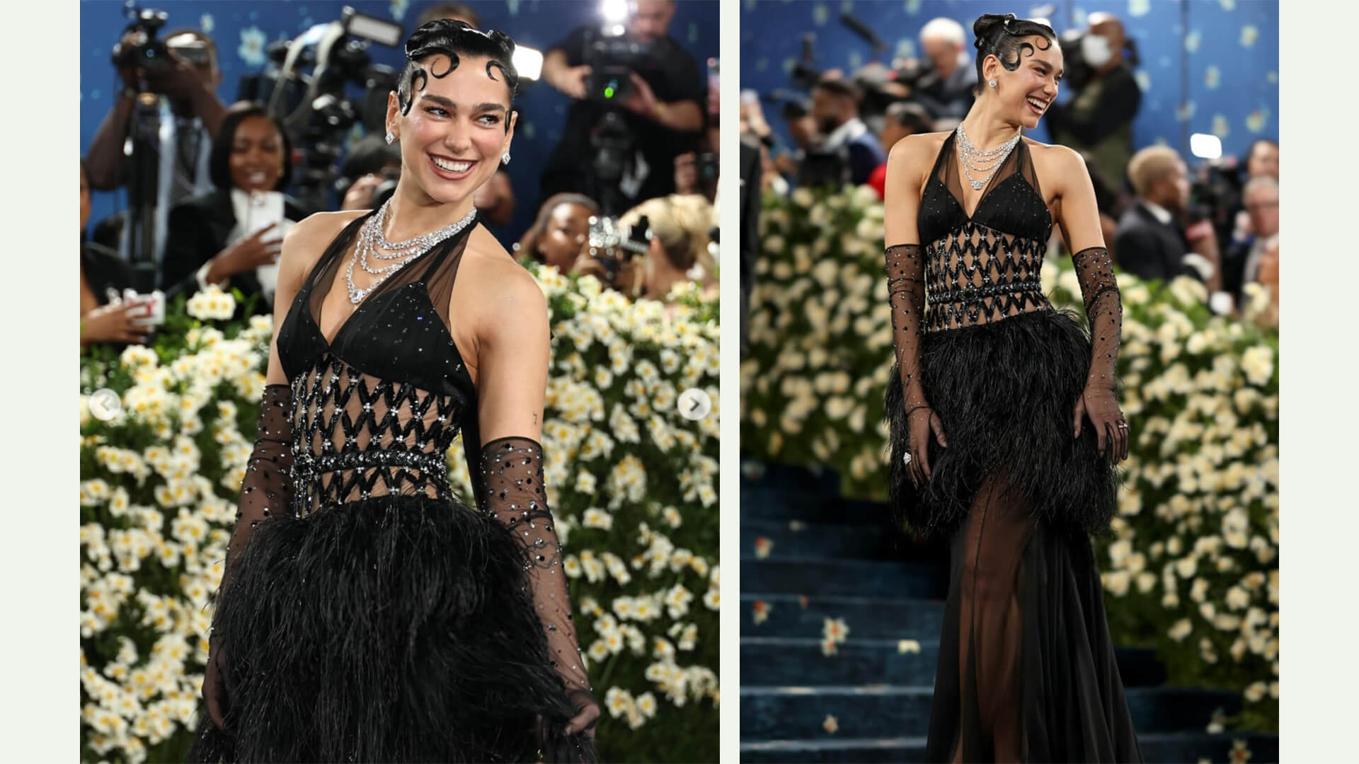 Dua Lipa, 1930’lardan fırlamış gibi görünen, el işlemeli siyah bir Chanel elbise ve uyumlu eldivenlerle Met Gala’ya katıldı.