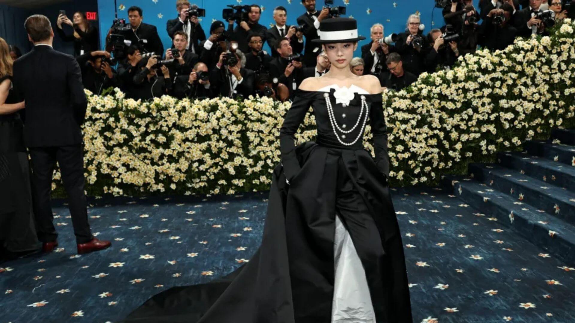 Blackpink yıldızı Jennie, efsanevi Coco Chanel’e saygı duruşunda bulunarak Chanel imzalı siyah smokin esintili bir elbise giydi ve gecenin temasına tam anlamıyla uyum sağladı.
