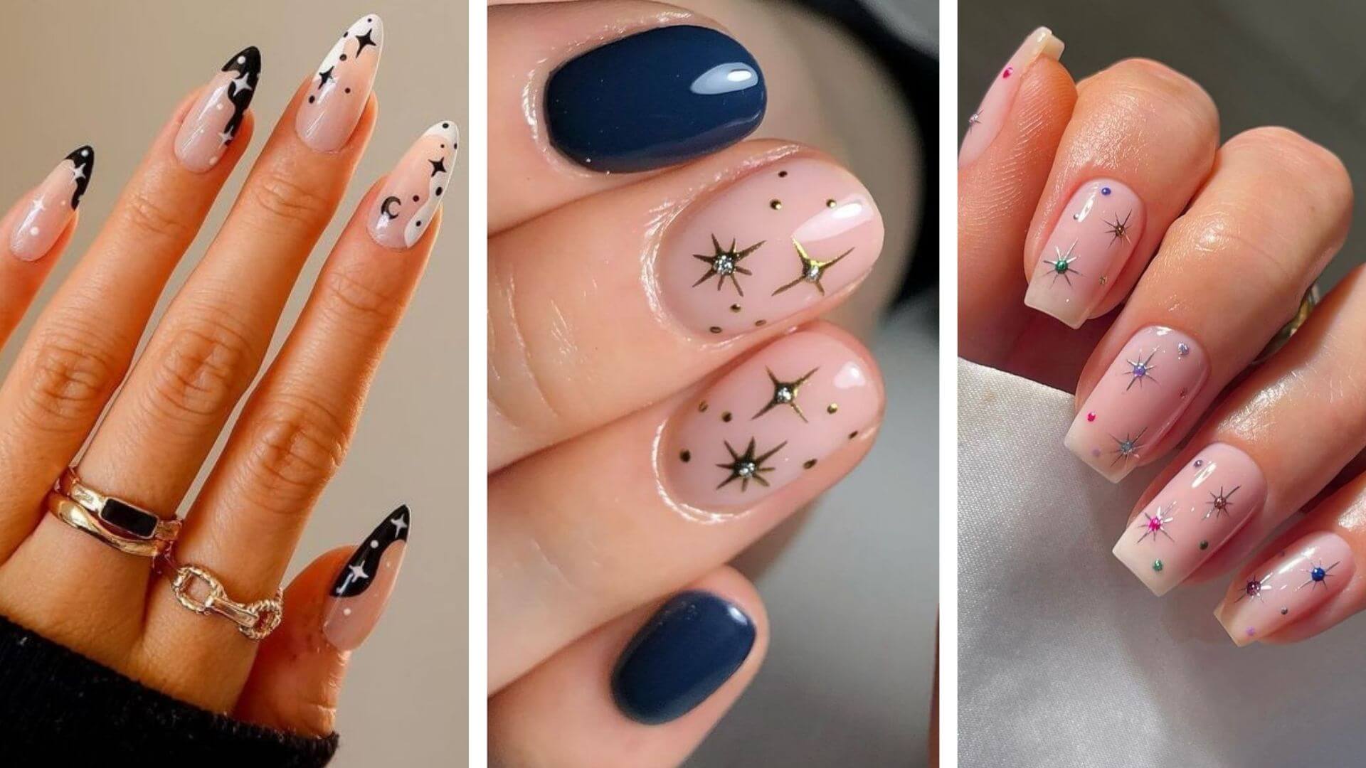 6. Minimalist Yılbaşı Tırnakları Yıldızlı Gece Tırnak Tasarımları