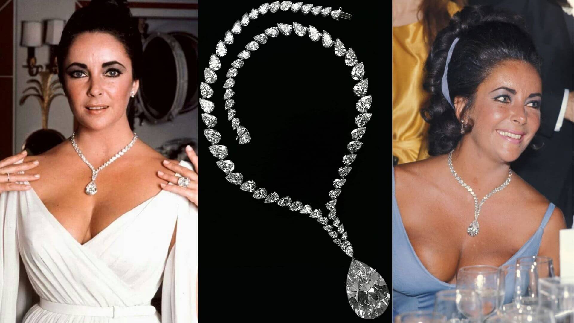 Aşklarının zirve noktası, Taylor-Burton Elması oldu—69.42 karatlık armut kesim şaheser, önce bir yüzük olarak tasarlandı, ancak Taylor, Cartier’den onu bir kolyeye çevirmesini istedi.