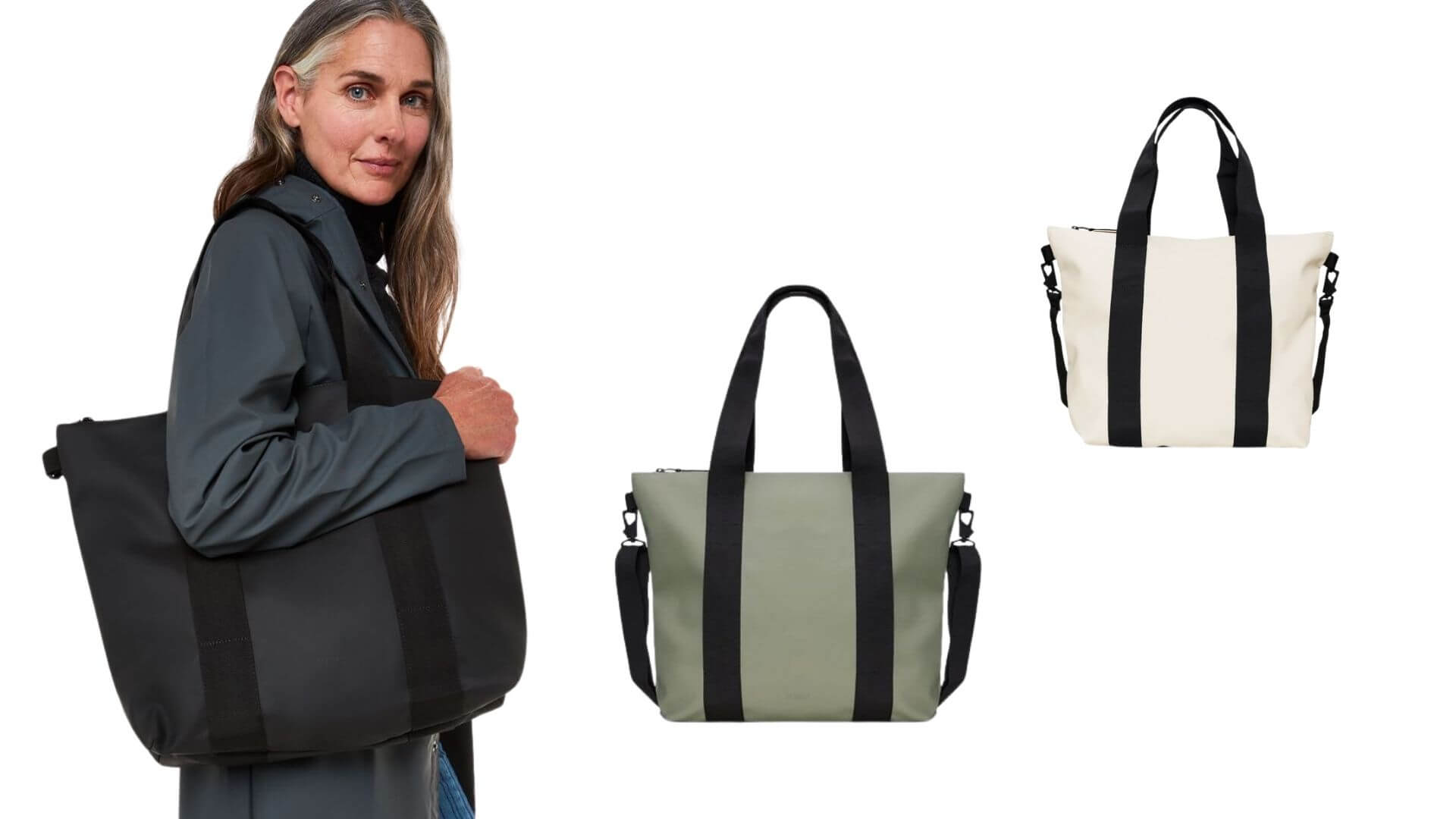 Yağmurlu hava ihtimali olan yerlere ideal, minimalist tasarımlı bu su geçirmez tote her kıyafetle uyum sağlıyor. Çıkarılabilir omuz askısı, anahtar ve valiz takipçisi takmaya uygun halkalar dikkat çekiyor. Ofisten havaalanına, market poşetinden plaja her yere götürdük. Daha büyük boyu da var.