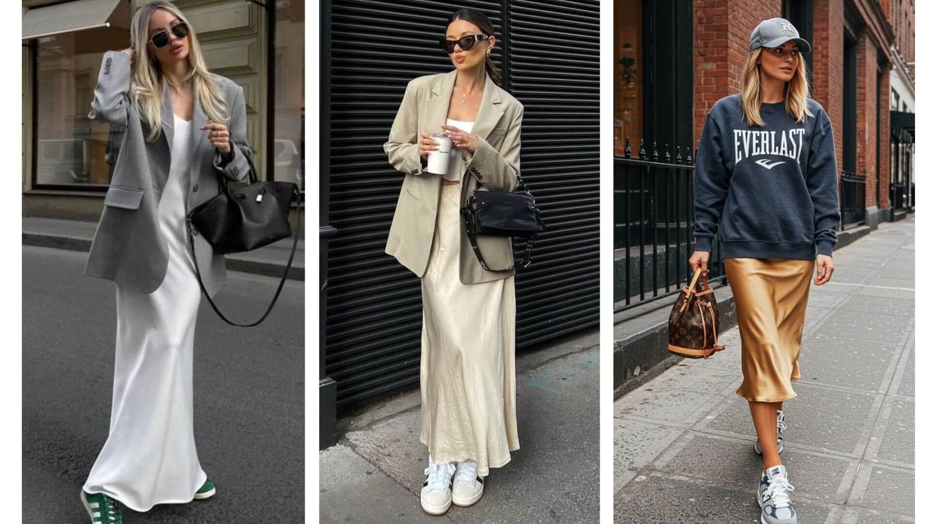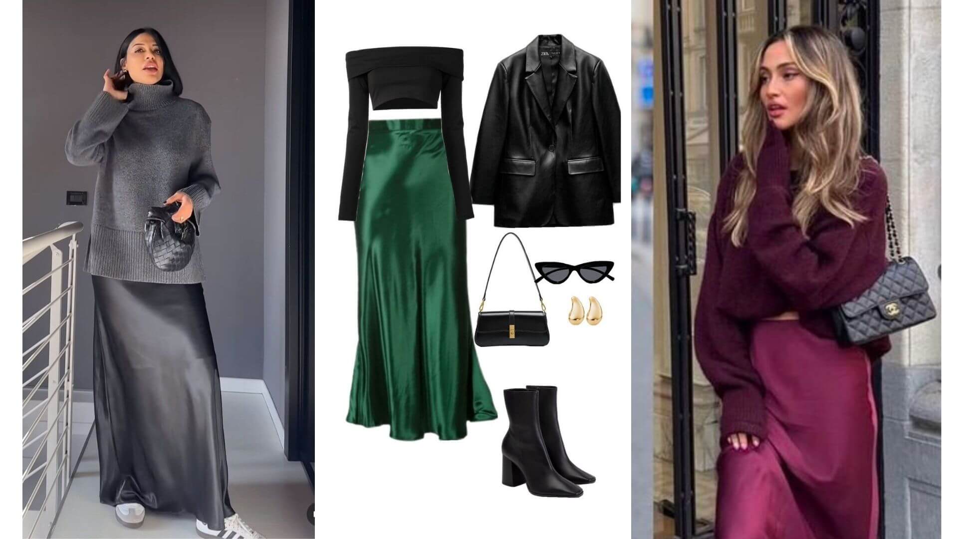 Sonbaharda saten etek, gardırobun en zarif ama aynı zamanda en çok yönlü parçalarından biridir. Gündüz için saten eteği spor ayakkabılar ve oversize bir kazak ya da basic tişört ile eşleştirerek rahat, şehirli ve modern bir görünüm elde edebilirsiniz. Bu kombin, kahve buluşmaları ya da hafta sonu gezmeleri için idealdir.