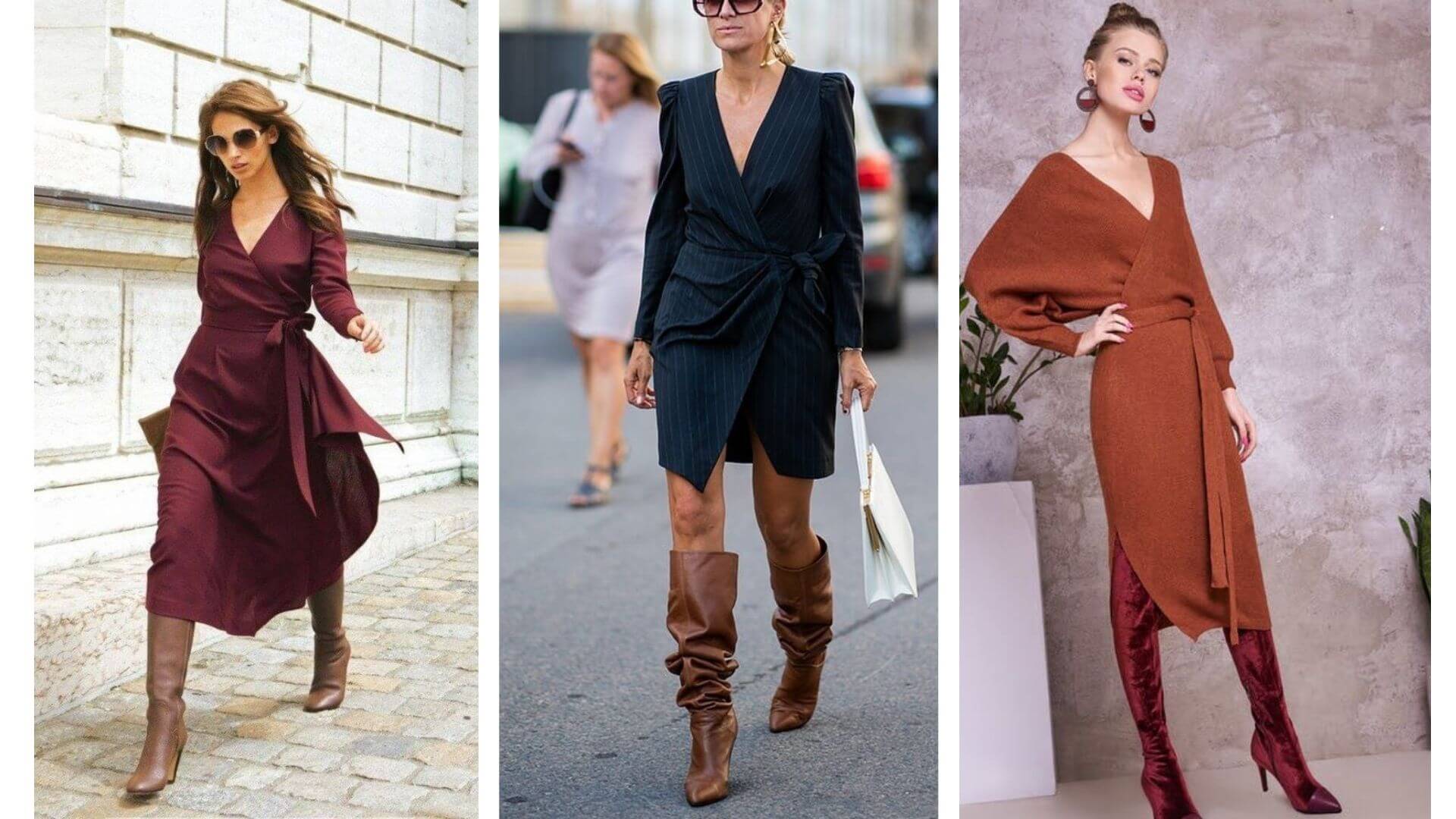 Sonbahar Modası Minimalist Kombinler – Sargı Elbise (Wrap Dress) Ve Çizme