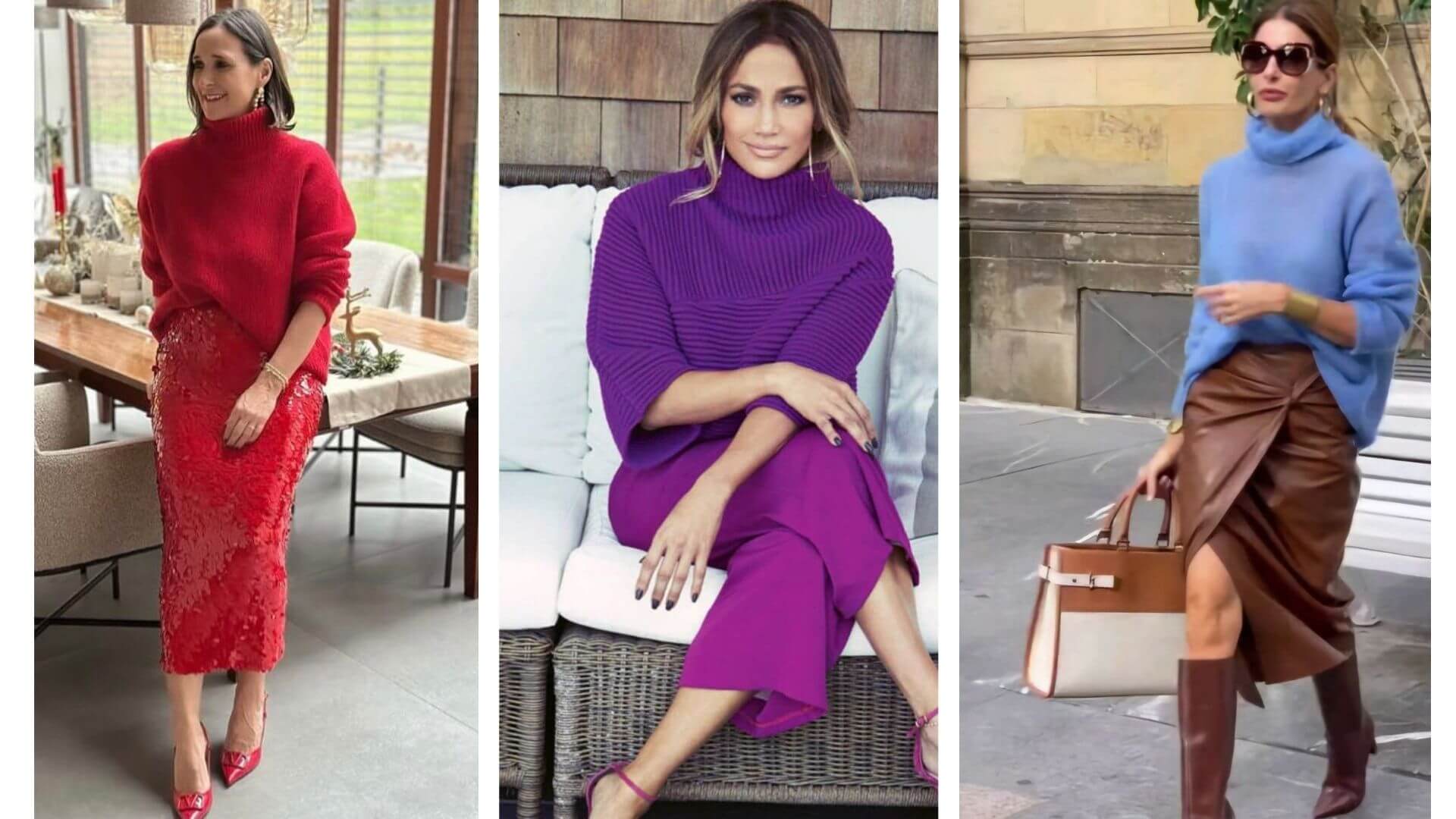 Zahmetsiz zarafet yayan bir görünüm için klasik bir yüksek yakalı kazakla midi eteği eşleştirmeyi düşünün. Bu kombin, rafinelik ve sofistikasyonu korurken oranlarla oynamanıza izin verir. Yüksek yakalı kazak, serin sonbahar günleri için ideal sıcaklık ve konfor sağlar. Midi etek ise feminenlik ve zarafet katar.