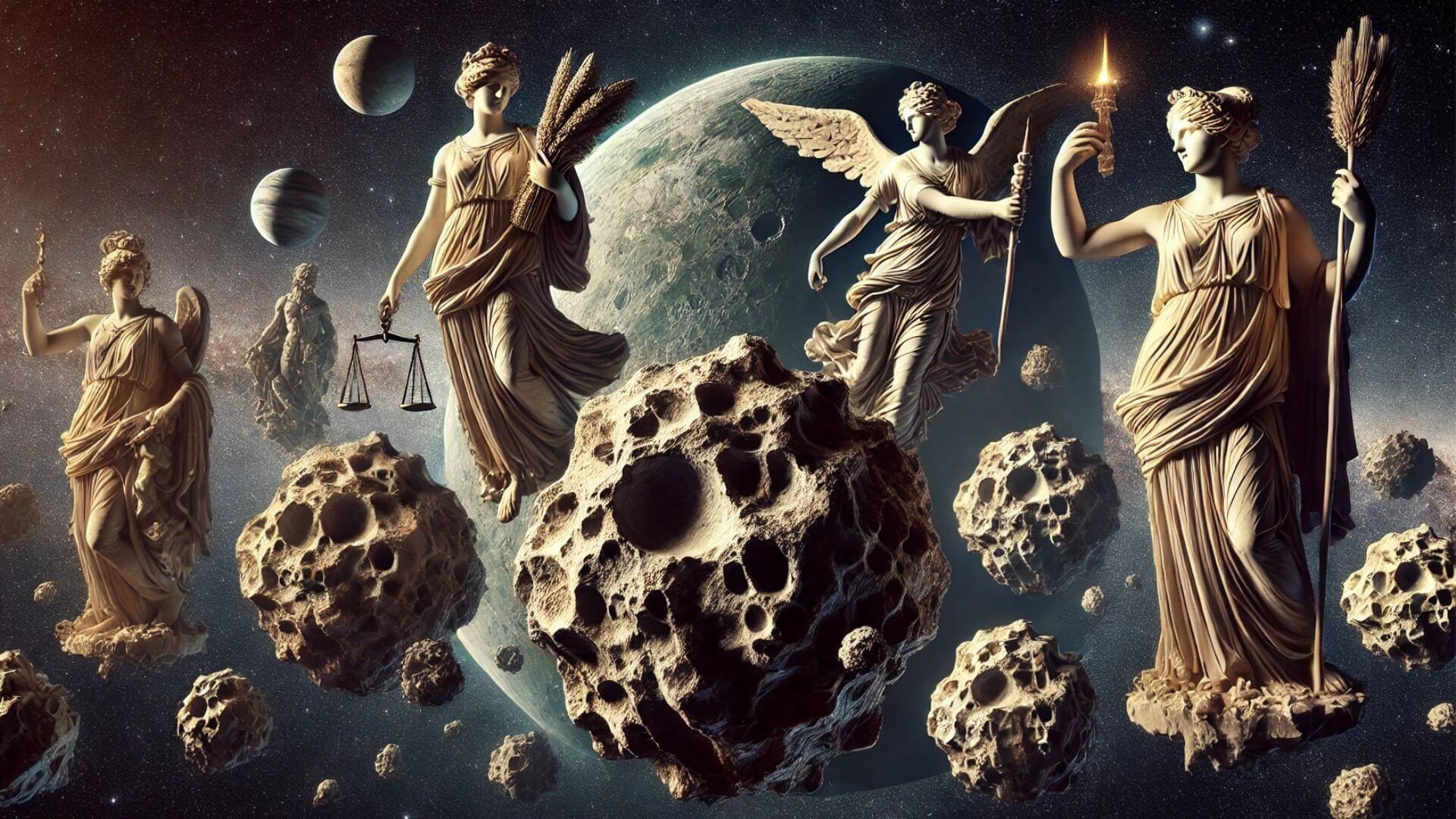 Tanrıça asteroitler, yüzyıllar boyunca unutulmuş veya bastırılmış olan Büyük Tanrıça’nın enerjilerini simgeler ve astrolojide önemlidir. Astroloji dünyasında, genellikle gezegenlerin kişisel, sosyal ve kolektif alanlarımızı etkilediğine inanılır. Ancak, son yıllarda astroloji alanında bir başka önemli kavram giderek daha fazla ilgi çekiyor: Asteroitler. Bu küçük asteroitler, kişisel ve hızlı hareket eden gezegenlerle (Güneş ve Mars gibi) yavaş hareket eden kolektif gezegenler (Jüpiter’den Pluto’ya kadar) arasında yer alır. Kişisel, sosyal ve toplumsal sorunlarımıza çözüm bulma yeteneklerimizi güçlendirmeye yardımcı olabilirler. Asteroitlerin en dikkat çekenleri ise