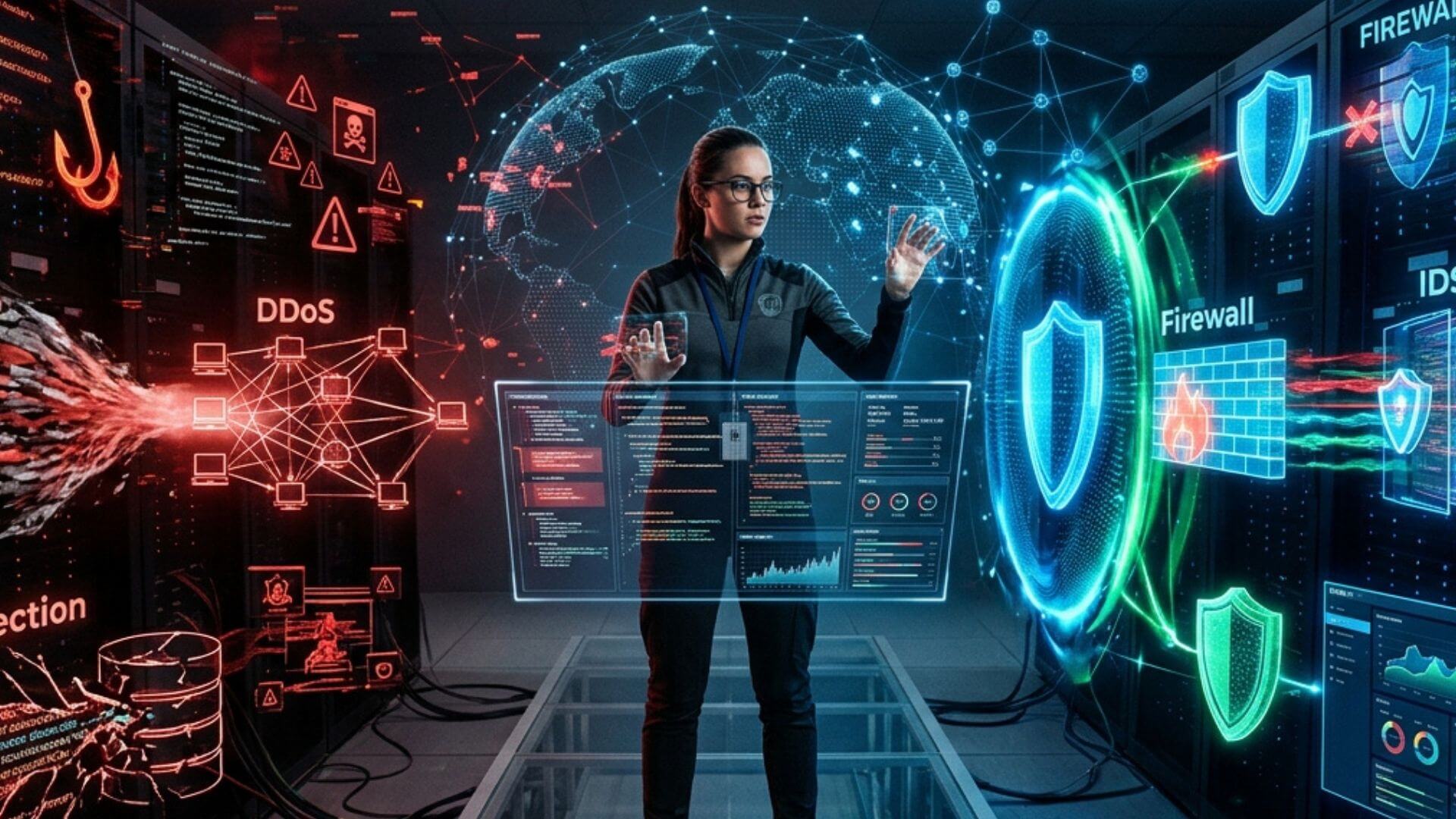 OWASP Top 10 (web uygulamalarının en yaygın 10 güvenlik açığı), ağ saldırı türleri (MITM, DDoS, phishing, SQL injection) ve savunma mekanizmalarını (firewall, IDS/IPS, SIEM) öğrenin.